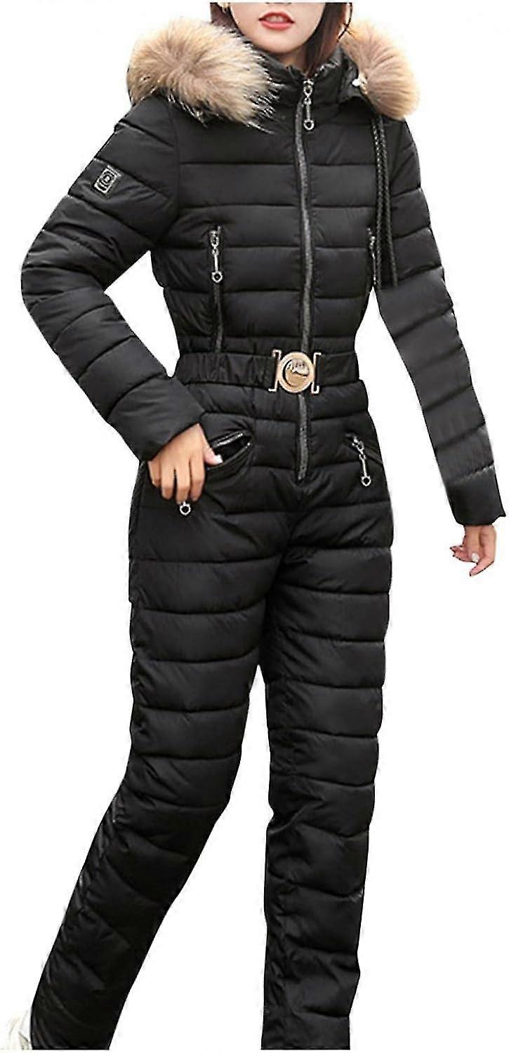 Womens Snowsuit Onesie With Fur Hood Winter One Pieces Ski Suits Waterproof Windproof Outfits Thick Sports Jumpsuit Outerwear