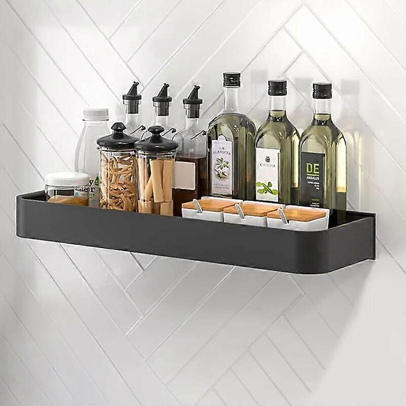 Wall Mounted Spice Rack No Drilling Hanging Spice Rack Spice Rack for Bathroom Kitchen 40cm Black