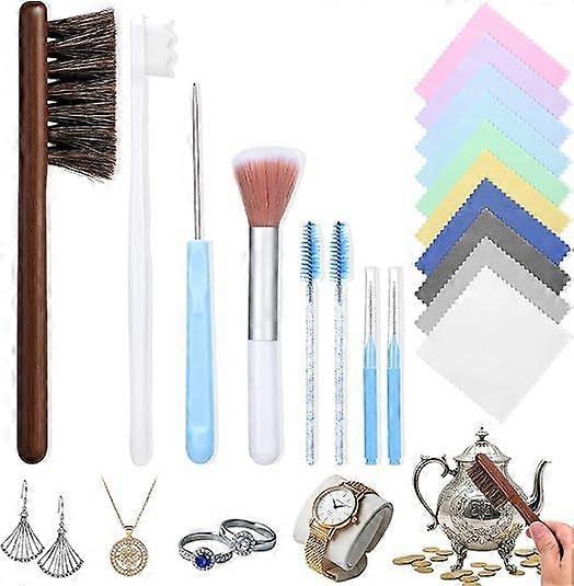 Jewelry Cleaning Kit,18 Pcs Jewelry Cleaner Brush Tool Set-Cleaning Polishing Cloth,Big&Small Hole Brush,Needles and Crevice Brush for All Jewelry,Rin