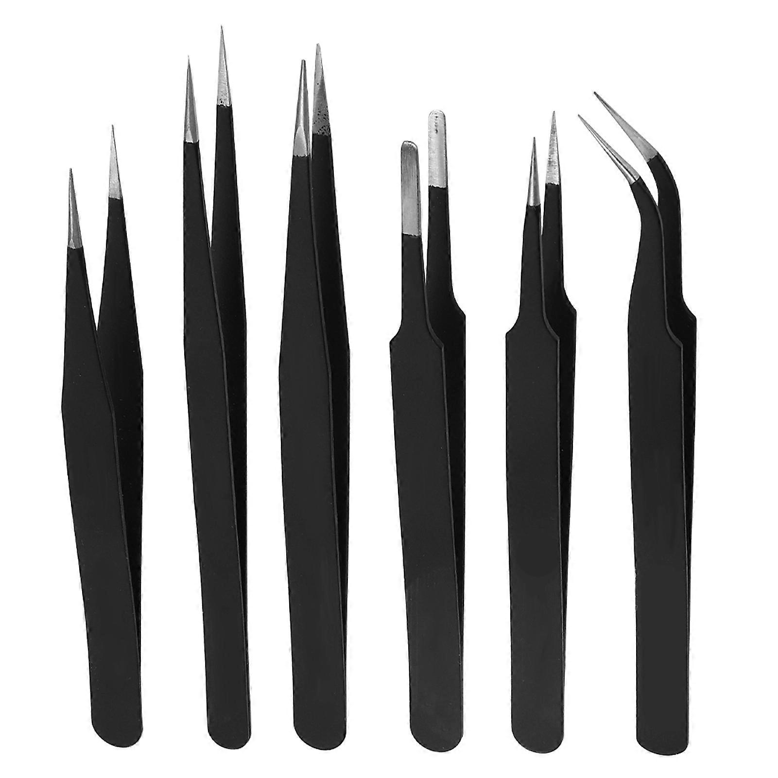 Steel Tweezers Set Black Flat Curved Mouth Tweezers for Watch Mobile Phone Repair
