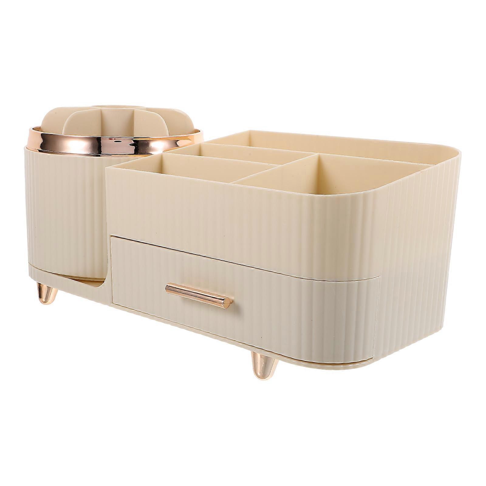 Rotating Makeup Brush Holder Large Capacity Plastic Vanity Organizer Multiple Compartments Stylish Cream White Makeup Storage for Bathroom Bedroom