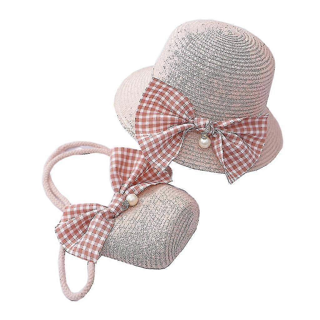 Girls Crossbody Bag Wide Brim Straw Weaving Bucket Hat Summer Outdoor Cap