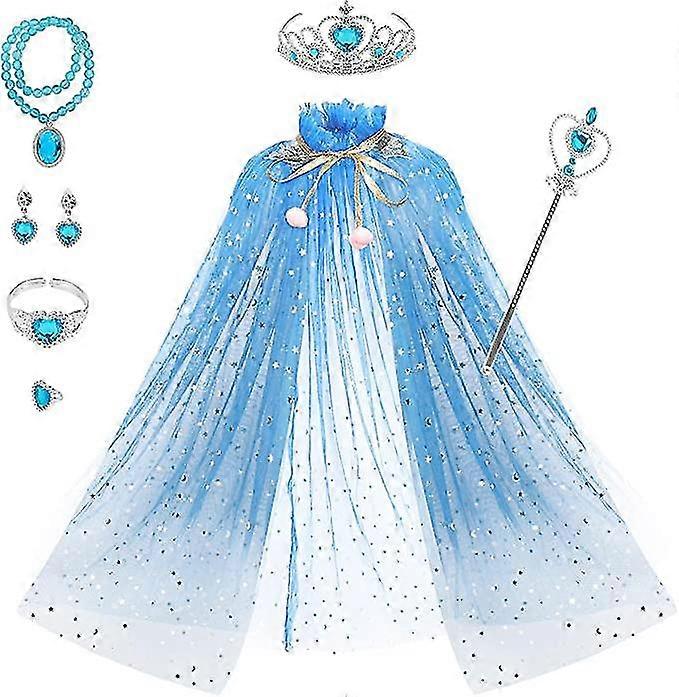 Princess Cape Set 7 Pieces Girls Princess Cloak With Tiara Crown, Wand For Little Girls Dress Up