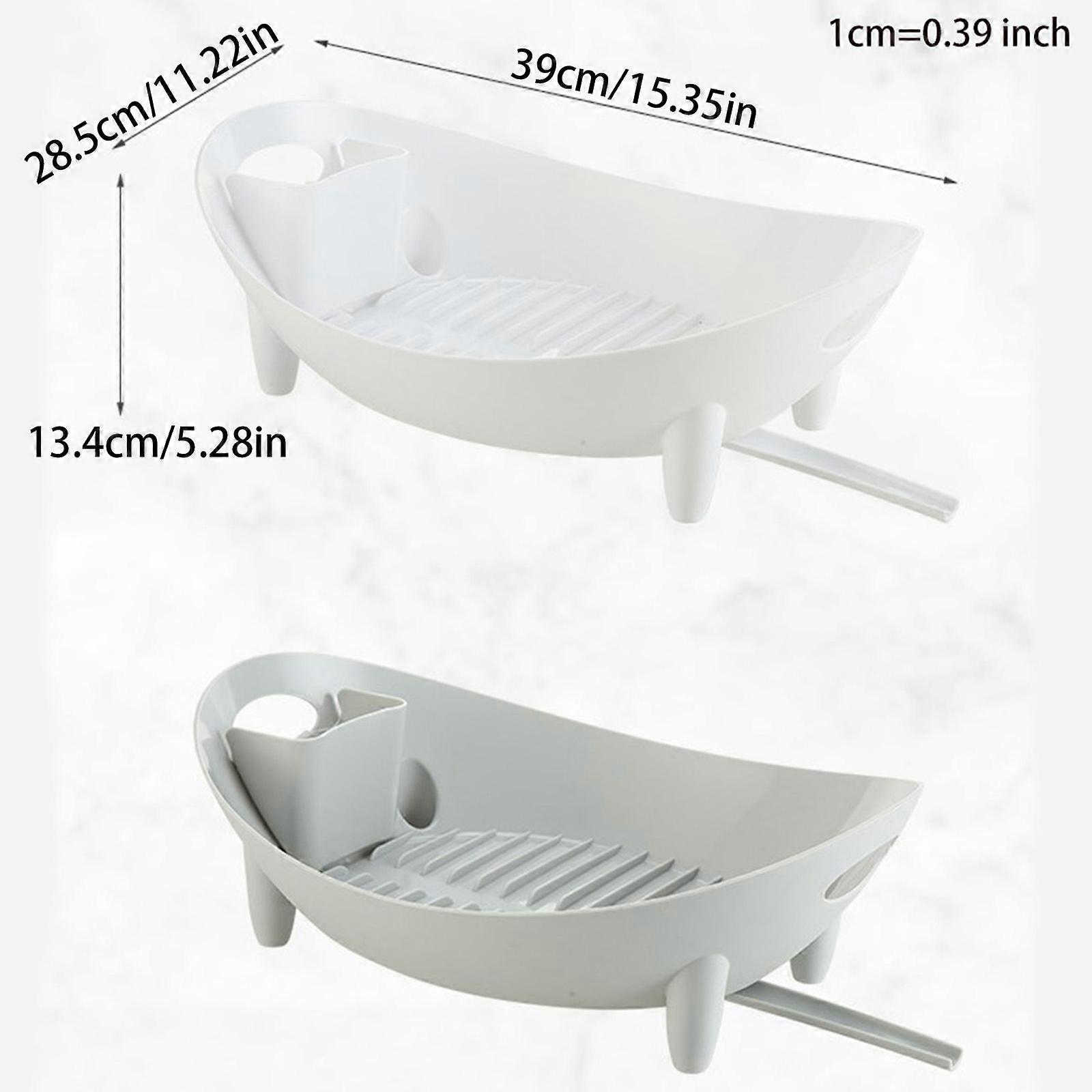["Features:\nbrand new and high quality\nThe dish drying rack has a simple and very unique design. Unique oval shaped basket, matches to any style of kitchen design.\nComplete with drainage holes, this dish drying rack features a utensil and cutlery holder that can be removed or repositioned to suit your individual needs.\nMade of high quality plastic, durable, sturdy, more strong endurance, with drain guide, easy to clean.\nWater guide: No drain water on your countertop. You can keep your counter clean and dry even after dish clean.\nWell-made to fit on standard counter space. Functional design allows for multiple-dish configurations.\nDesigned for cups and utensils organization, reasonable storage of your dishes, cups and a variety of tableware. \n\nSpecification:\nMaterial: Plastic\nOptional Color: Gray, White\nSize: app. 42.5x32x14.5cm(16.73x12.60x5.71in)\nQuantity: 1 pc\n\nNote:\nTransition: 1cm=10mm=0.39inch\nNo retail package.\nPlease allow 1-3cm error due to manual measurement. pls make sure you do not mind before you bid.\nDue to the difference between different monitors, the picture may not reflect the actual color of the item. Thank you!\n\nPackage includes:\n1 x Dish Rack(other accessories demo in the picture is not included.)"]