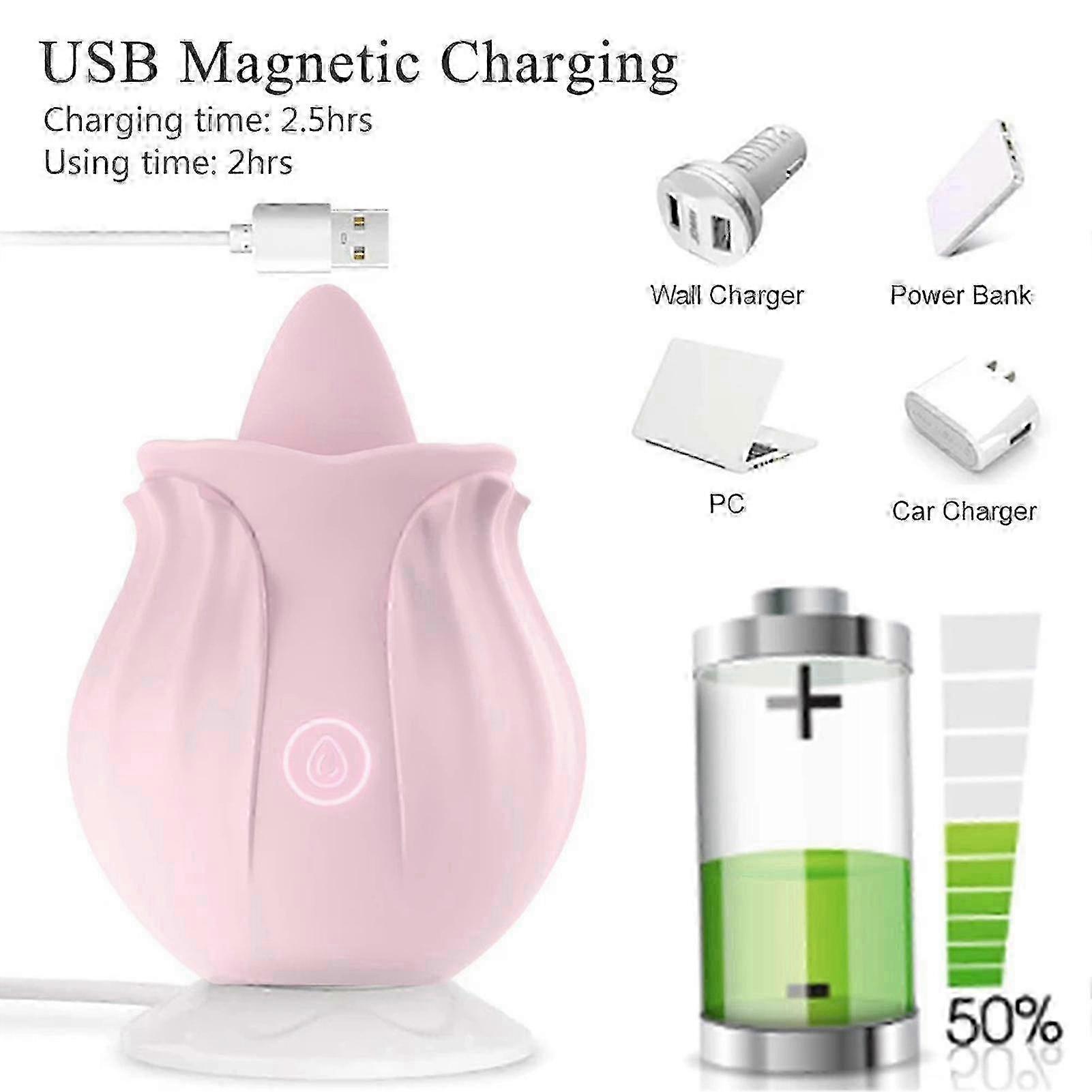 Rose Flower Tongue Vibrator 10 Vibration Modes Silicone Waterproof Sexual Toy for Women