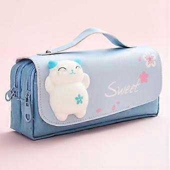 women's cute decompression pencil case (fat cat) blue