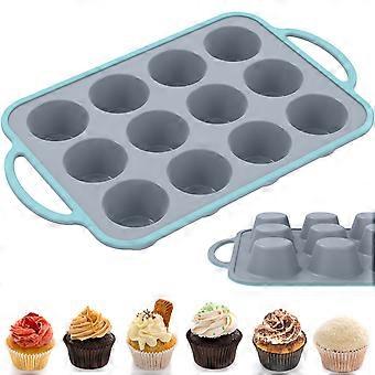 Silicone Muffins Tray, 2 Pack Muffin Pan 12 Cup Large, Non-stick Cupcake Tin Till