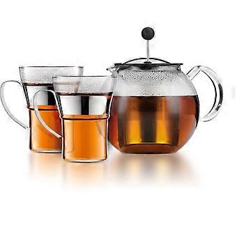 French Press Coffee Maker - BODUM - ASSAM SET - 1.0 l with lid, stainless steel filter + 2 glass mugs