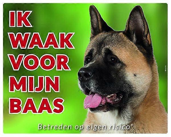 Stickerkoning Akita Waakbord - Ik Waak Voor Mijn Baas Bruin (2)
