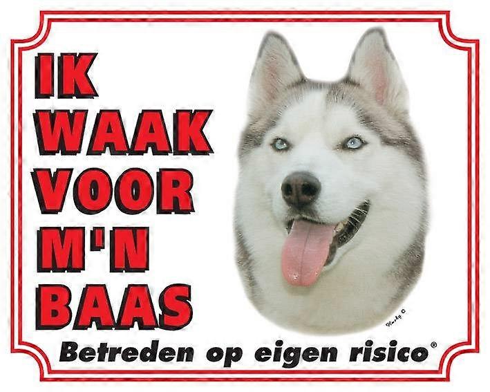 Stickerkoning Siberian Husky Waakbord - Ik Waak Voor Mijn Baas