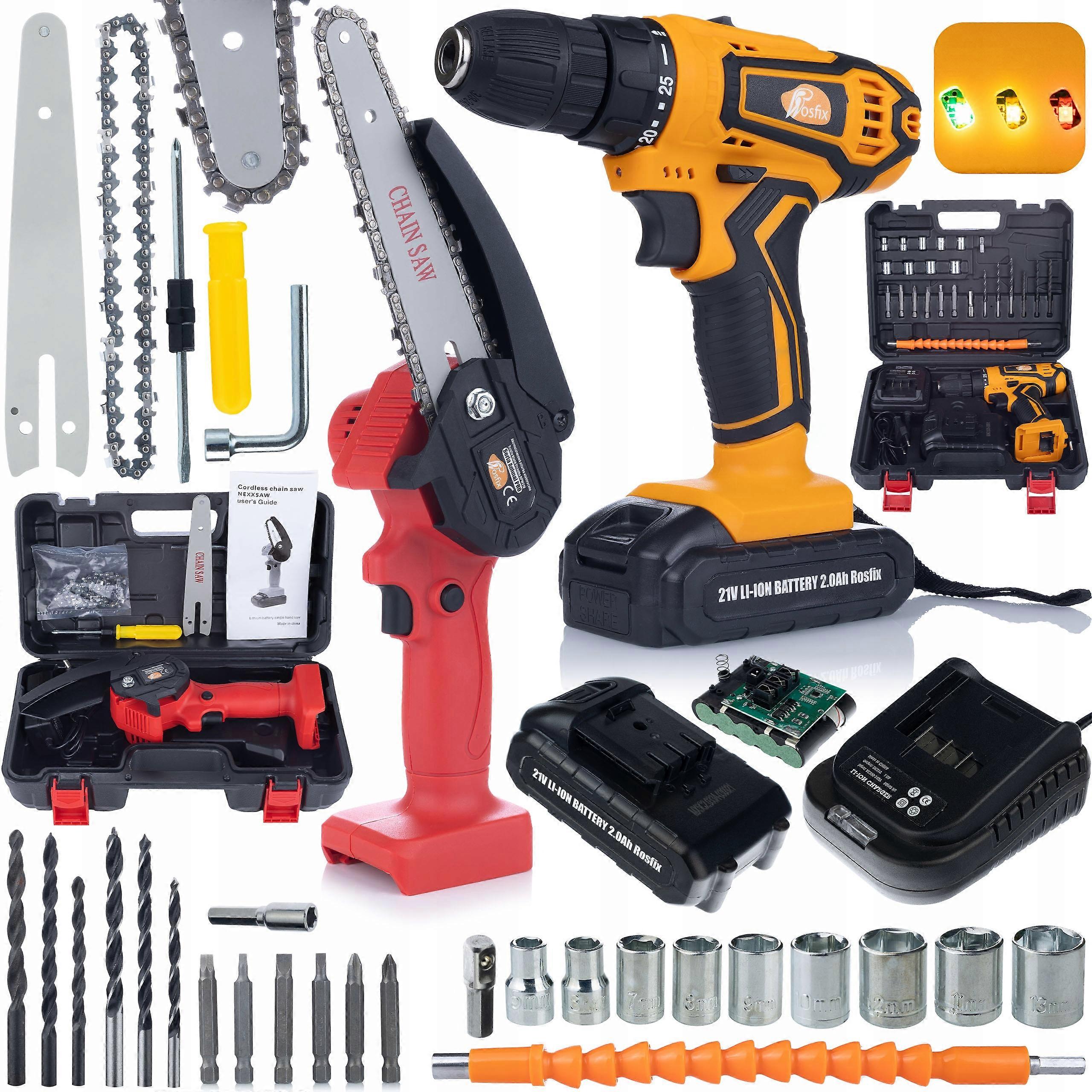 Rosfix Zestaw Akumulatorowy Pilarka Elektryczna Rp21V + Wiertarko-Wkrętarka Oc21V | 1200W, 21V