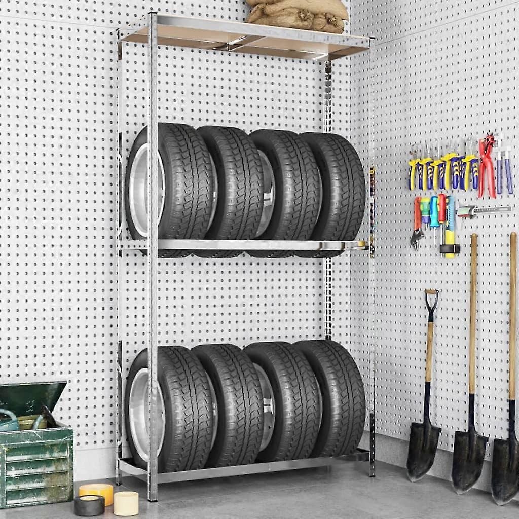 Reifenregal mit 2 Böden Silbern 110x40x180 cm Stahl
