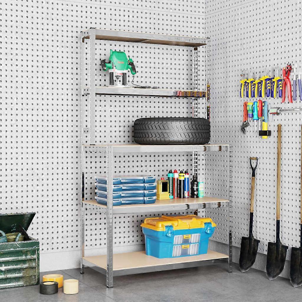 Diese Arbeitstisch mit Ablagen eignet sich hervorragend sowohl für den privaten als auch für den gewerblichen Gebrauch und bietet viel Platz, um all deine Sachen ordentlich aufzubewahren. Robustes Material: Das Regal besteht aus einem Stahlrahmen und Holzwerkstoffplatten. Der Stahlrahmen gewährleistet Robustheit und Stabilität, während Holzwerkstoff für Festigkeit, Stabilität und Feuchtigkeitsbeständigkeit sorgt.Hohe Tragfähigkeit: Dank des starken Materials, der Verstärkungsstangen unter jedem Regalboden und des Regaldesigns ohne Verschraubung hat dieses Regal eine überragende Tragfähigkeit.Flexible Lagerung: Die Einlegeböden sind höhenverstellbar. So bietet das Regal reichlich Stauraum für alle Gegenstände, die du organisiert aufbewahren möchtest, um stets für Ordnung und Übersichtlichkeit zu sorgen. Hinweis:Jedes Produkt wird mit einer Montageanleitung in der Verpackung für eine einfache Montage geliefert. Achtung:Um ein Umkippen zu verhindern, muss dieses Produkt mit einer Wandhalterung gesichert werden (Wandhalterung ist nicht im Lieferumfang enthalten). Farbe: SilberMaterial: Verzinkter Stahl, Holzwerkstoff, KunststoffAbmessungen: 100 x 20/50 x 180 cm (L x B x H)Stärke der Holzwerkstoffplatten: 5 mmStahl-Stärke: 0,6 mmTragfähigkeit: 200 kg pro BodenRostfreier, verzinkter StahlFußkappen aus Kunststoff zum Schutz des Bodens vor Kratzern5 höhenverstellbare EinlegebödenMit einer Verstärkungsstange unter jedem RegalbodenKann ohne Schrauben/Bolzen montiert werdenMax. Tragfähigkeit (pro Ablage): 200 kgLegal Documents: Weitere Informationen, wie Sie Ihre Möbel vor dem Umkippen schützen können, finden Sie hier
