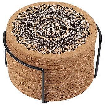 1 set Creative Nordic Mandala Design Round Wood Coasters with Stand (10X10X0.5 cm, Multicolor)