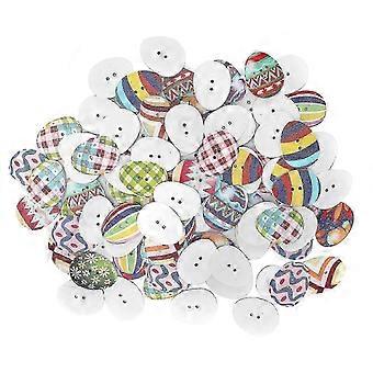 100Pcs Button Set Colored Egg Shape Wooden Sewing Decorative Buttons with Perforations