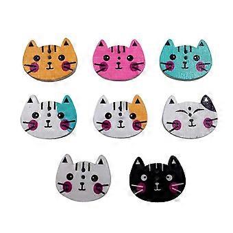100pcs Mixed Color Cat Shape Printed Wooden Sewing Button