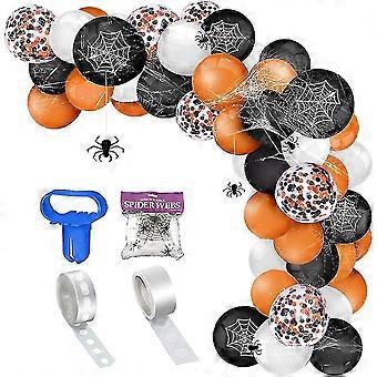 109 Pieces Balloon Garland Arch Kit Include Orange Black White Confetti Balloons With Spider Web For Party Background Classroom Decoration