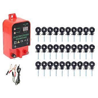 [Upgraded Electric Fence ]Power supply can reach 10 miles, enough to meet your needs in scenarios, better control livestock and prevent predators. The output power of up to 2J is enough to meet the charging needs of large animals such as cattle, horses, pigs, and goats. Contains 30 electric fence insulators [Comprehensive Functions]The design provides excellent waterproof function, allowing the electronic fence to function normally even in extreme weather. Equipped with alarm device to better protect you. [Easy to install] Equipped with mounting holes for easy installation. Note: To avoid the risk of to pedestrians, please place warning signs after installation. Input voltage: DC12V Input current: 2A Working current: 100-700mA Output voltage: 10KV Pulse interval: 1.3S Pulse duration:Less than 0.1S Stored energy: 2J Output energy: 1.5J Maximum transmission distance: 20KM Optimal loading distance: within 10KM Plug Type:EU Plug,it applies to Indonesia, Germany, France, Spain, Italy and so on Colour:Photo Color Material:plastic Voltage: AC 220V Package Contents: 30 x insulators 1 x Display 1 x Installation package Only the above package content, other products are not included. Note: Light reflection and different displays may cause the color of the item in the picture a little different from the real thing. The measurement allowed error is +/- 1-3cm.