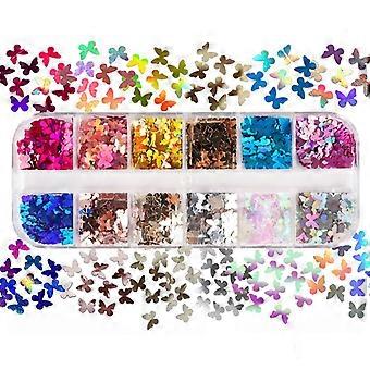 12 Grids/Box 5mm 3D Shiny for Butterfly Sequins Manicure Paillettes for Epoxy Re