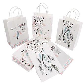 12 Pcs Kraft Paper Favor Bags - Dream Catcher Pattern Paper Bags with Handle, Multi-Use Favor Pack