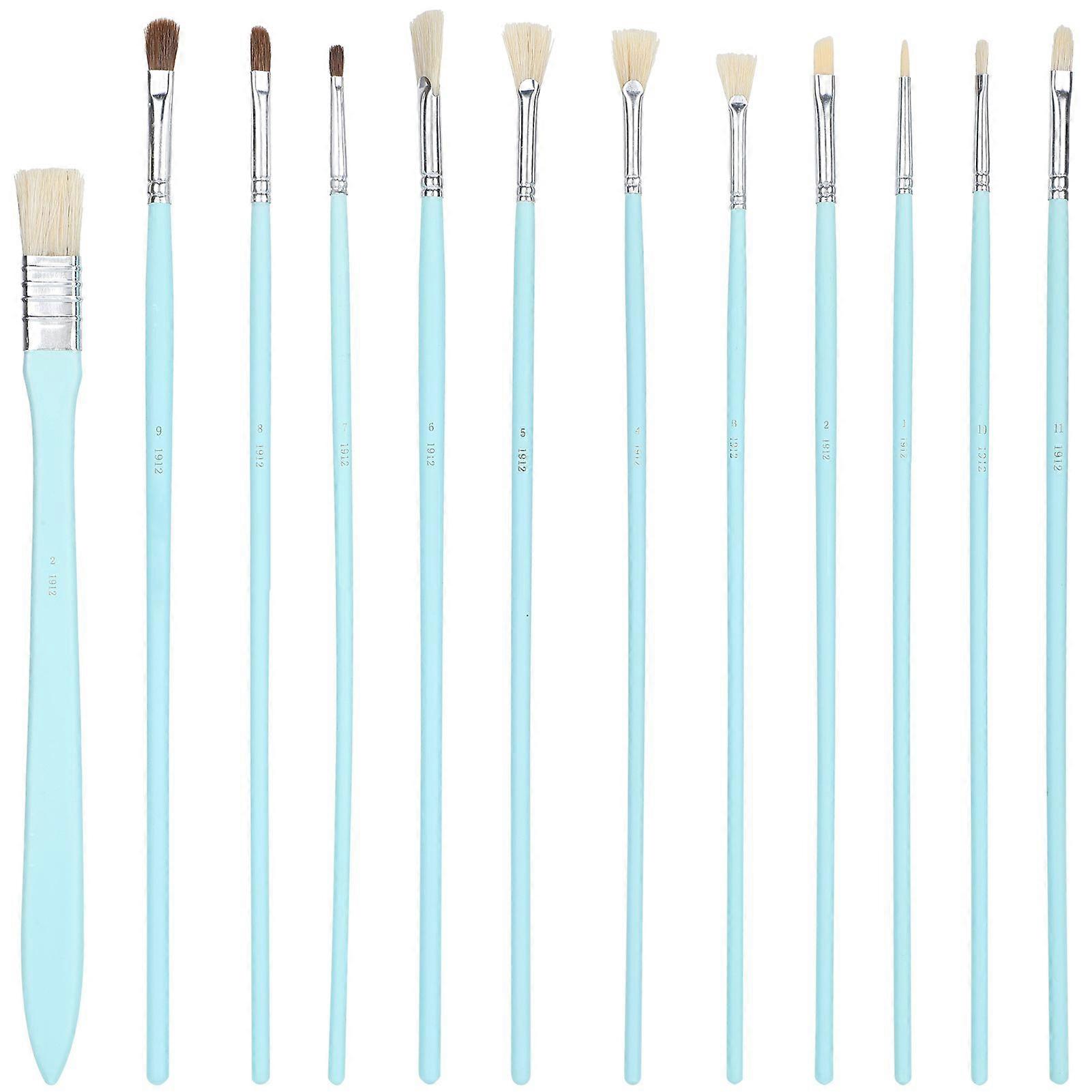 12Pcs Art Paint Brushes Drawing Fan Shaped Artist Brush Long Rod Set Supplies Blue
