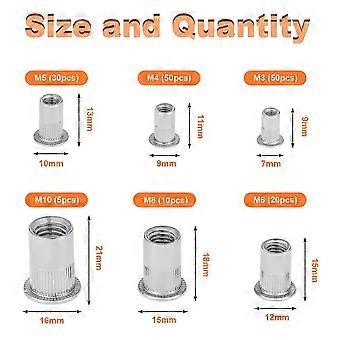 165PCS Stainless Rivet Nut Tool Flat Threaded Head(6 Types Nuts)