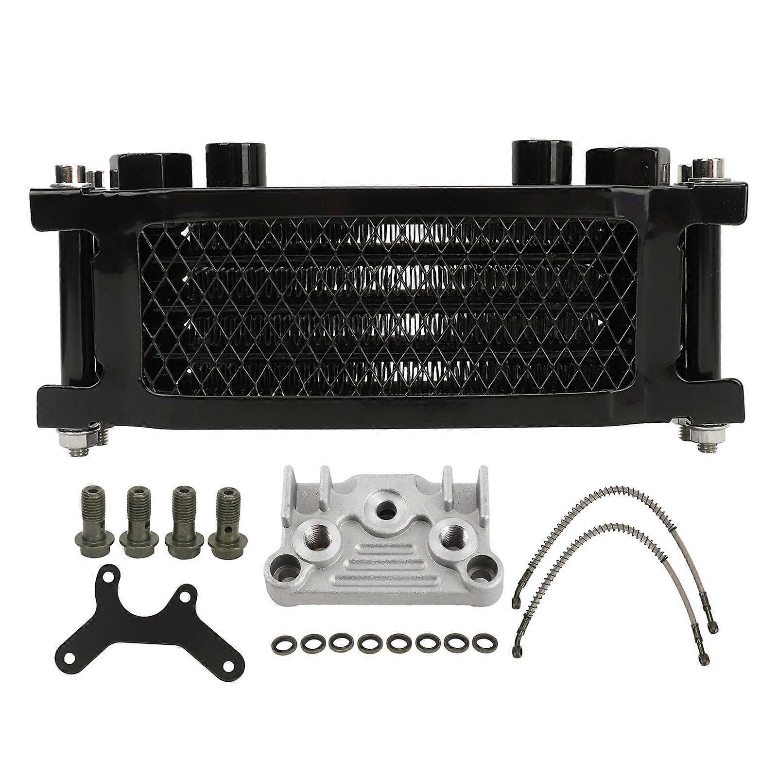 17PCS Motorcycle Oil Cooler Radiator Set Aluminum 4 Row Engine Oil Cooling Kit Replacement for Monkey 125cc140cc Black
