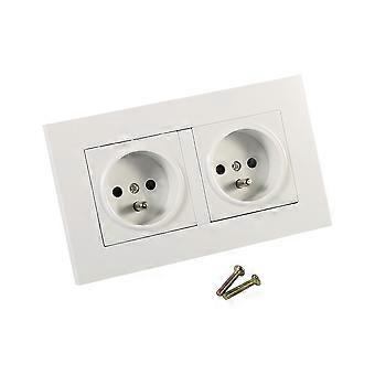 1PC French Standard Wall Power Socket,White PC Material Panel AC 110~250V,16A 2 Way