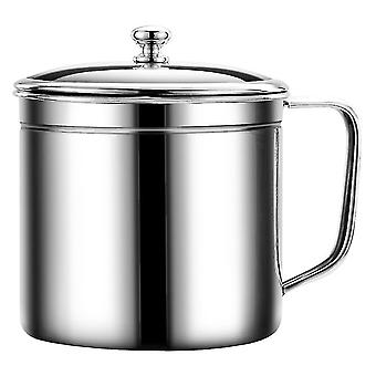 1pc Stainless Steel Oil Strainer Pot Oil Container With Mesh Grease Strainer Can (silver)