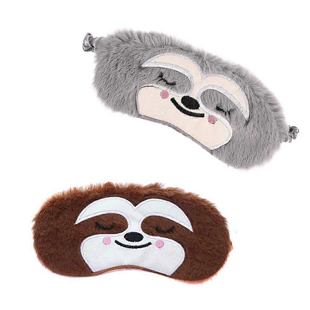 2 Pieces Funny Blindfold Fluffy Soft Silk Plush Sloth Sleep Eye Mask Travel Blindfold for Girls Boys Women Men Kids Home Sleeping (Grey Brown)