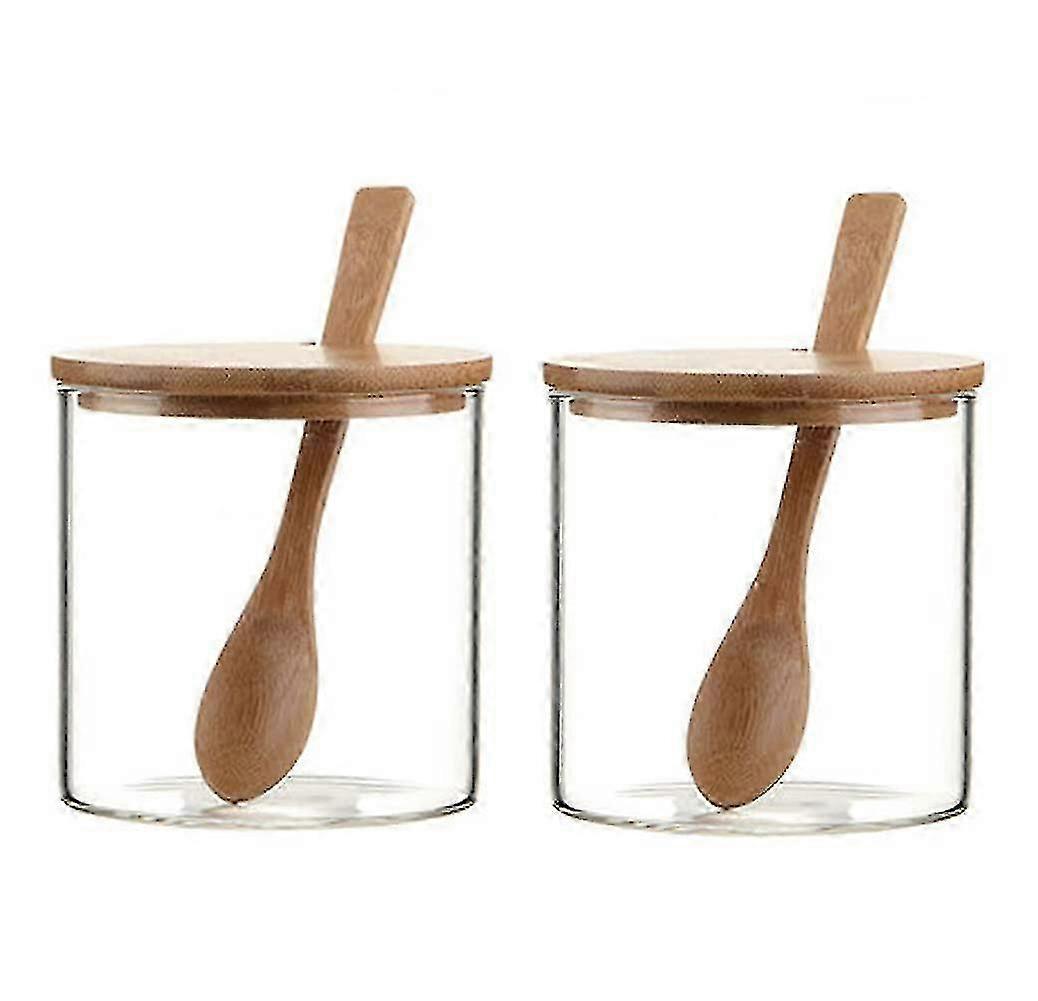 2-Pack 300ml Clear Glass Spice Jars with Wooden Spoon & Lid for Kitchen Storage