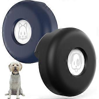 (2 pieces, black + blue, tracer not included) AirTag Collar Holder, [fits into collar] [no pendant] Compact AirTag silicone case, compatible with AirT