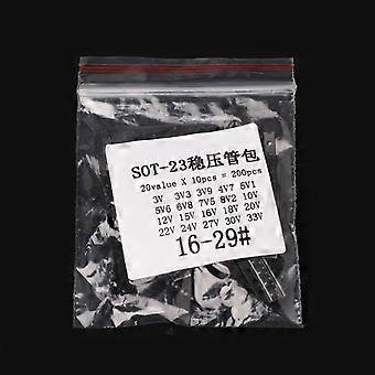 200Pcs SOT23 SMD Diode Sample Kits 20 kinds Each 10Pcs 3V-33V Zener SMD Diode