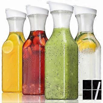 2025 4pcs, Plastic Water Carafe With Flip Top Lids, Square Base Heavy Duty Water Containers, Beverage Pitcher For Water, Tea, Juice, Milk, Lemonade An