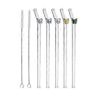 2025 5 Pcs Reusable Glass Straws,colorful Butterfly On Clear Straws With Design Shatter Resistant Bent D-hao