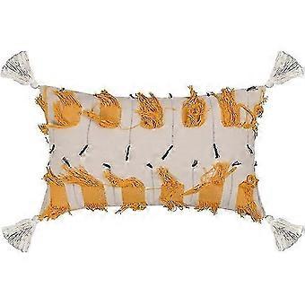 2025 Boho Tufted Throw Pillow Cover with Fringes Accent Decorative Rectangle Lumbar Cushion Case Pillowcase for Bed Sofa Car (Yellow Tufted,12"x20")