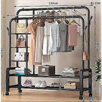 2025 Heavy Duty Double Clothes Rail 120KG Load Cloth Rack With Shelves & Shoe Stand