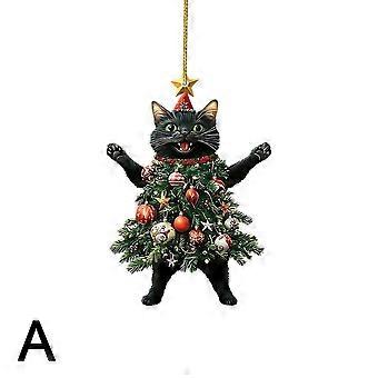 2D Flat Cat Wearing Christmas Tree Skirt, Hanging Ornament for Christmas Tree