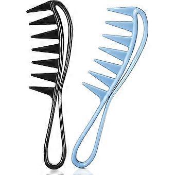 2pcs Curved Combs, Wide Tooth Comb, Curly Hair Comb, Anti-static Hairdressing Comb, Salon Afro Comb With Handle