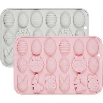 2pcs Easter Silicone Chocolate Moulds 18 Cavity Egg, Bunny Rabbit Head Basket Shapes Molds For Diy Chocolate Candy
