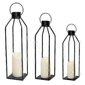 3 Sets Decorative Black Metal Lanterns for Indoor Use in 22'', 19'', Sizes 16'' 2025