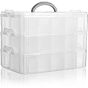 3-Tier Clear Stackable Storage Container, Plastic Organizer Box with 30 Compartments(Adjustable),for Organizing Arts and Crafts,Washi Tapes,Beads,Kids