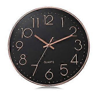30Cm Modern Black Silent Wall Clock, Quartz Non Ticking Decorative, Rose Gold 3D Numbers Classic Wall Clock Easy To Read