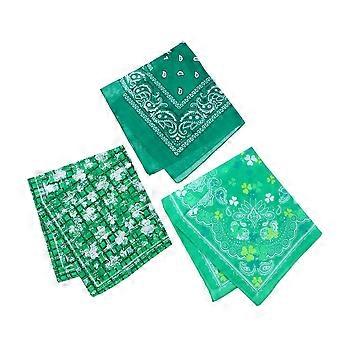 3pcs Cotton Clover Printing Squares Scarf Headband Set Beautiful Decor Scarf for Festival Holiday Party (Green, Pattern 1, Pattern 2, Pattern 3 is Ran