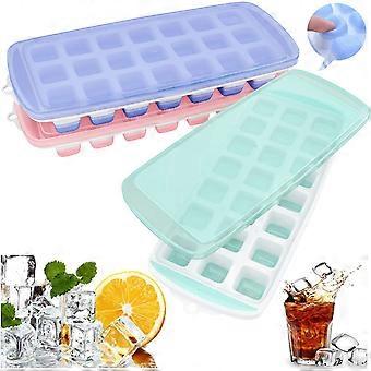 3pcs Ice Cube Tray Soft Silicone Ice Molds with BPA Free Lid Easily Release 21 Ice Cubes for DIY Chocolate Whiskey Drink Cocktail