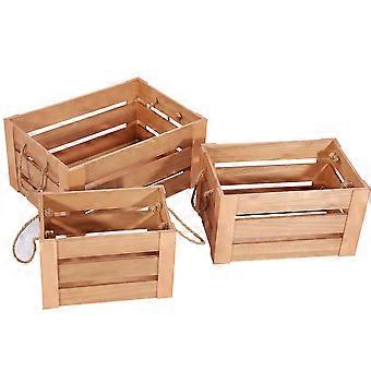 3pcs Vintage Farm Shop Style Wooden Slatted Apple Crate Display Storage Box Natural