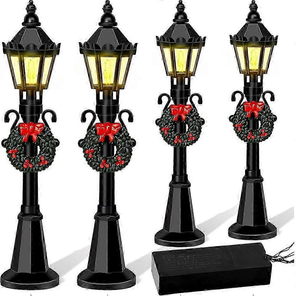 4 Pcs Christmas Mini Street Light Models Dollhouse Streetlight Miniature Village Pathway Lantern Post for DIY Micro Landscape Fairy Garden Accessories