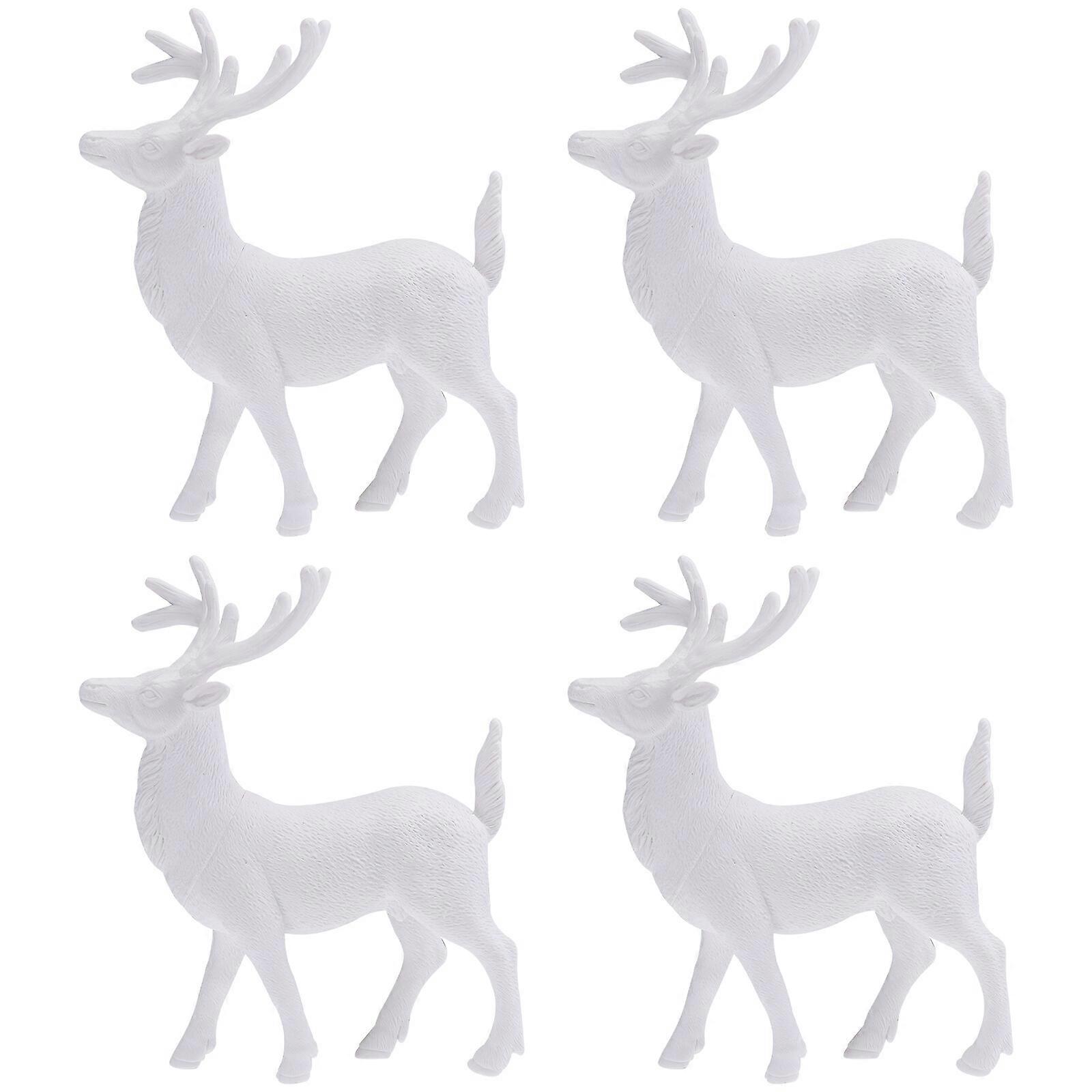 4pcs 14cm White Christmas Miniature Deer Model Ornament Creative Lifelike Mini Deer Desktop Decorative Accessory Props Kids Gift for Home Office