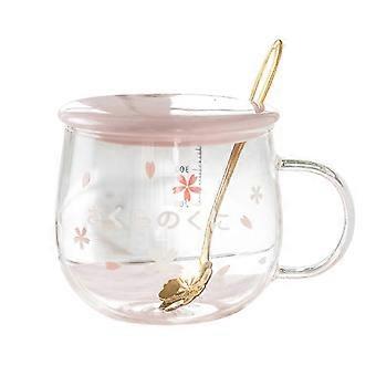 400Ml Creative Sakura Glass Coffee Water Cup with Handle Lid Spoon ,B