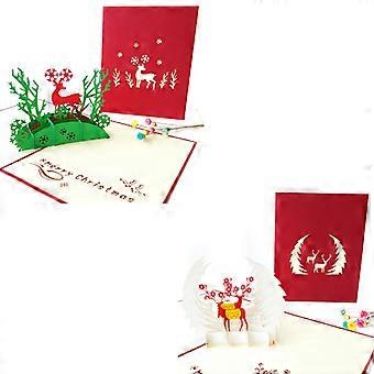 4pcs Handmade Christmas Greeting Cards, 3D Christmas Tree